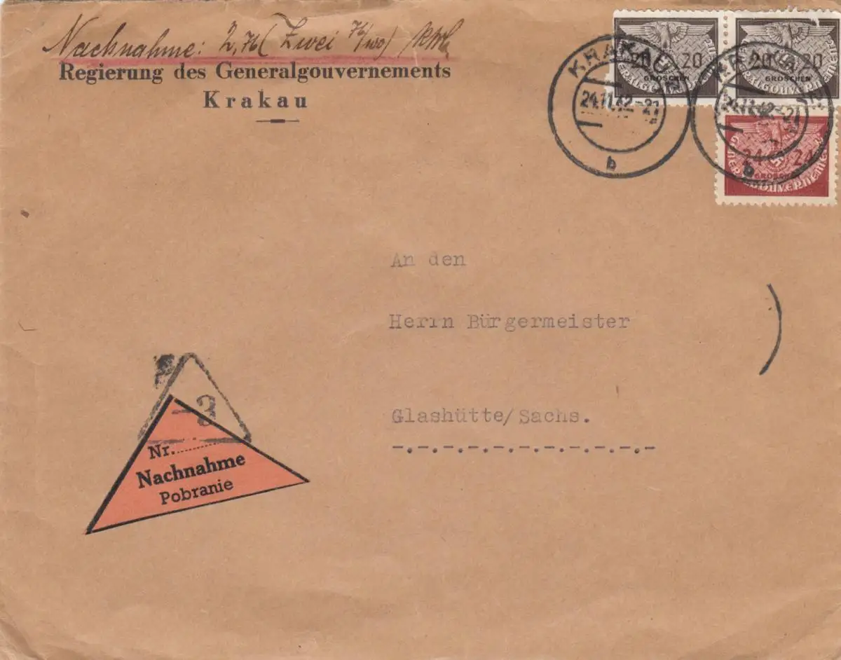 GG Accueil Lettre de service, porto juste de Cracovie à Glashütte