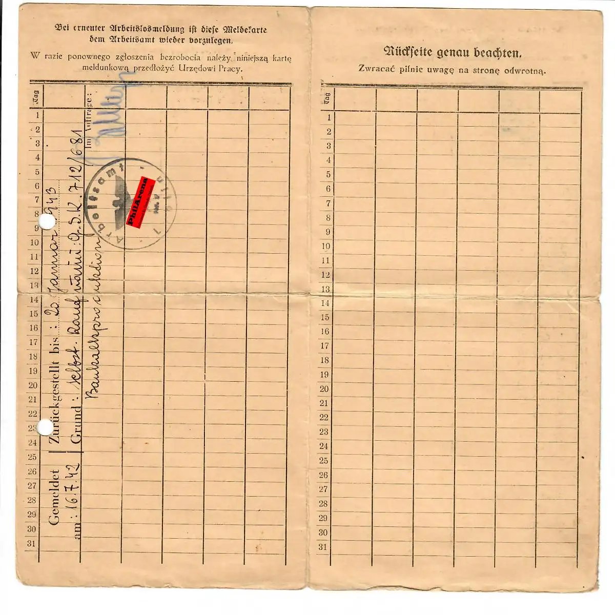 GG: Office de l'emploi Carte de déclaration: Négociant indépendant, Lublin/Bilorajska