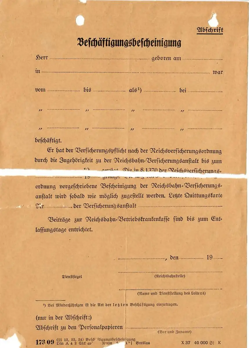 Aus einer Forschungssammlung Sammlung OSTBAHN. Es sind noch weitere Angebote von Dokumenten, auch mit Literatur zur Eisenbahn oder Ostbahn eingestellt. Die Dokumente sind teils gefaltet, flecking oder mit stärkeren Altersspuren.