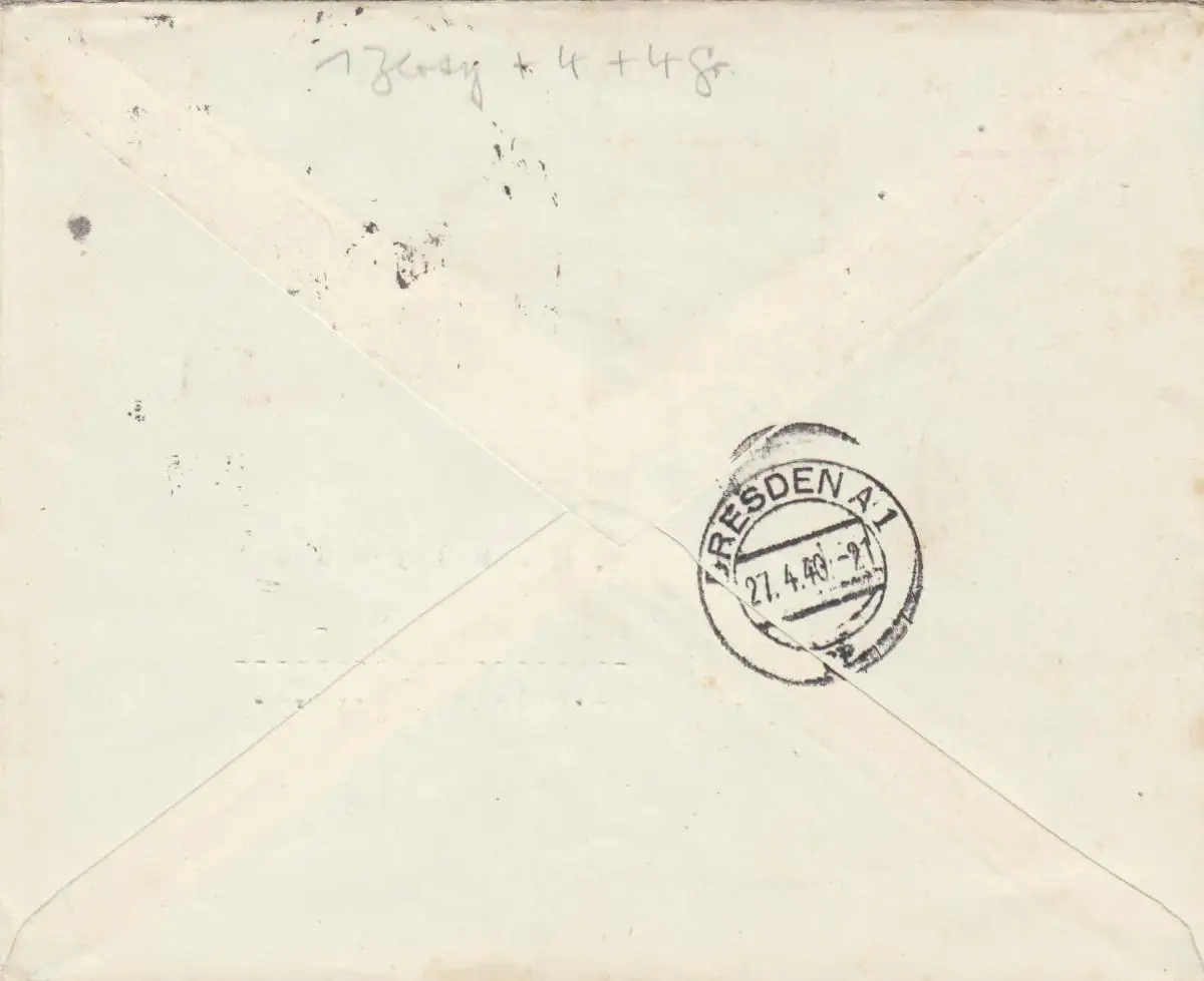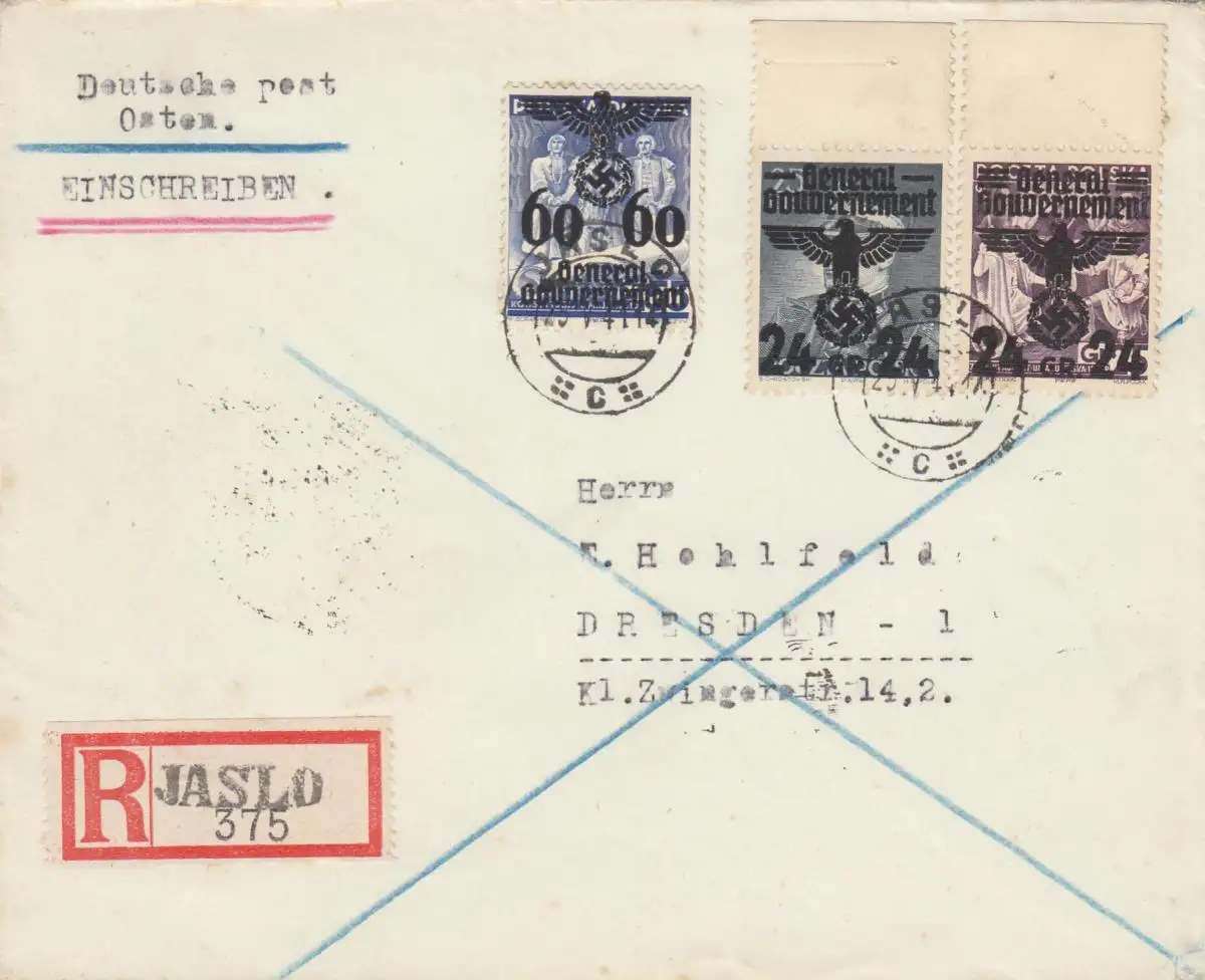 GG: lettre recommandée pour les frais de port, 2ème étage de Jaslo à Dresde