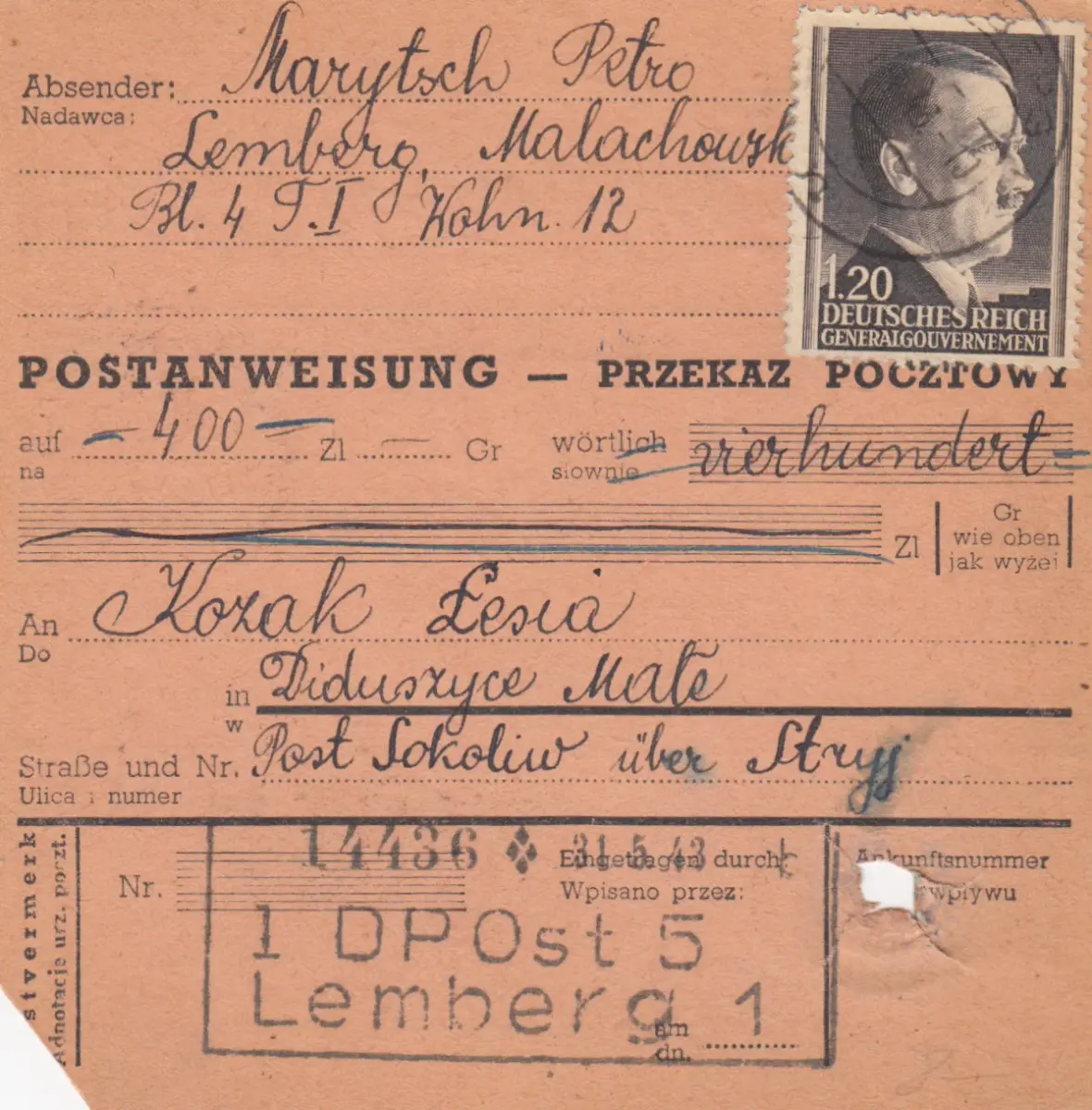 GG Commande postale Lemberg-Sokolov sur Stryj, DP Ost 5, MiF, portofach