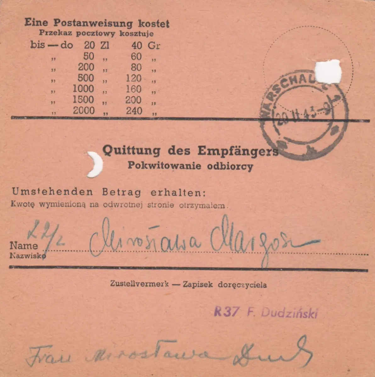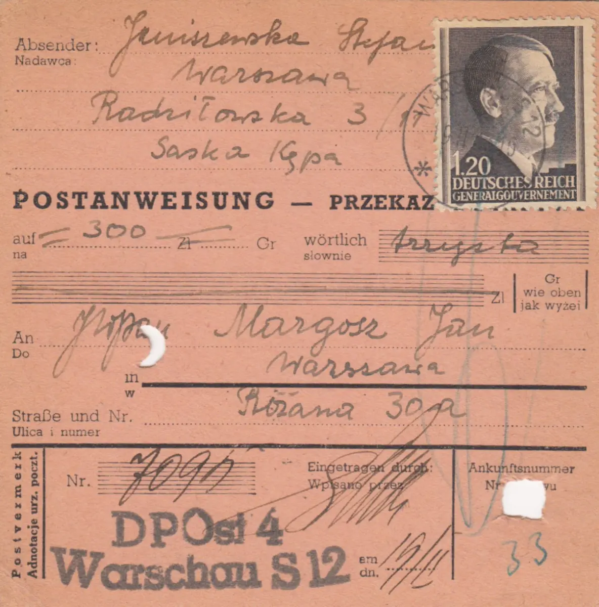 GG Commande postale Varsovie, DP Est 4, EF porto, rare.
