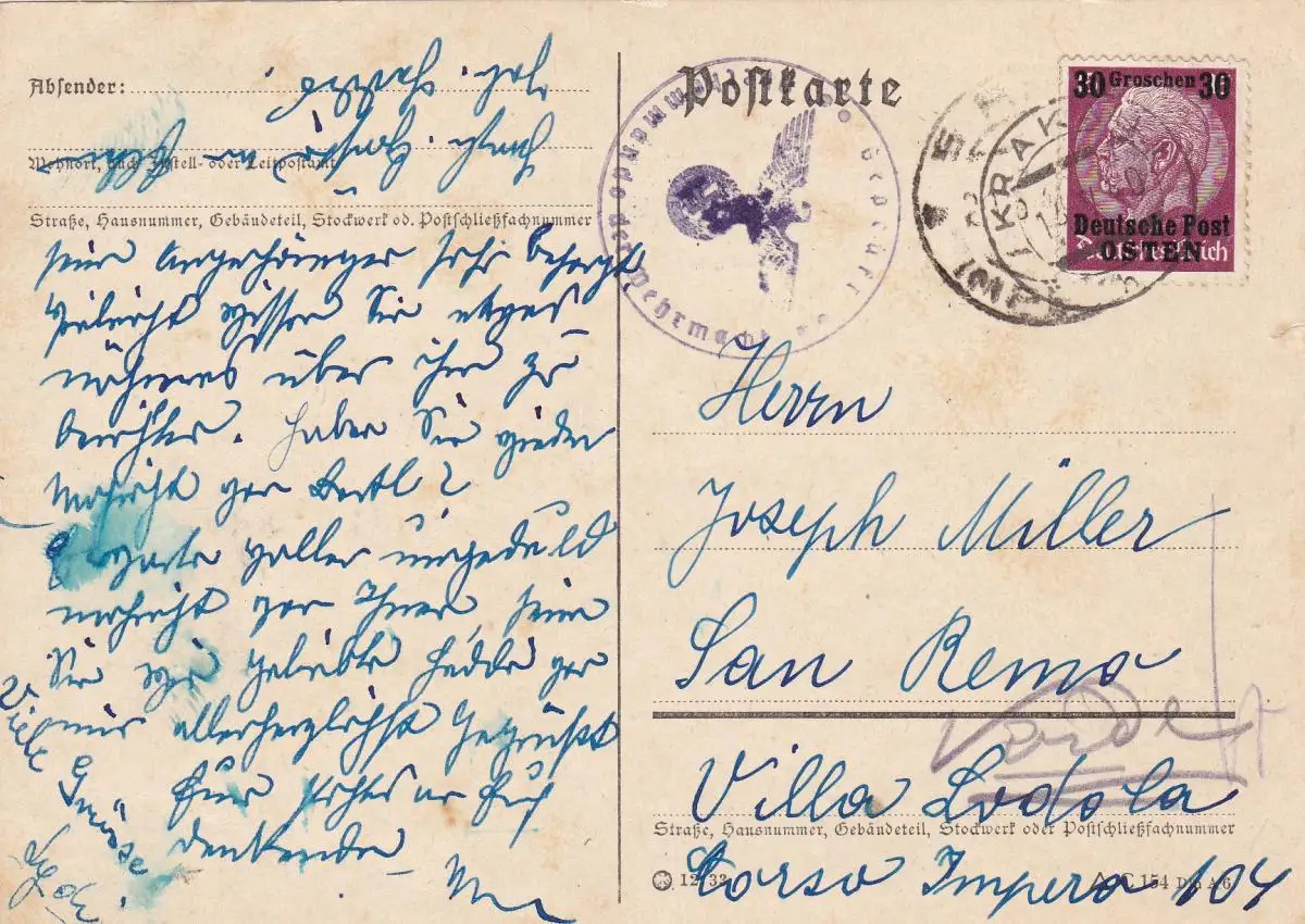GG: Carte postale de Cracovie à Italie