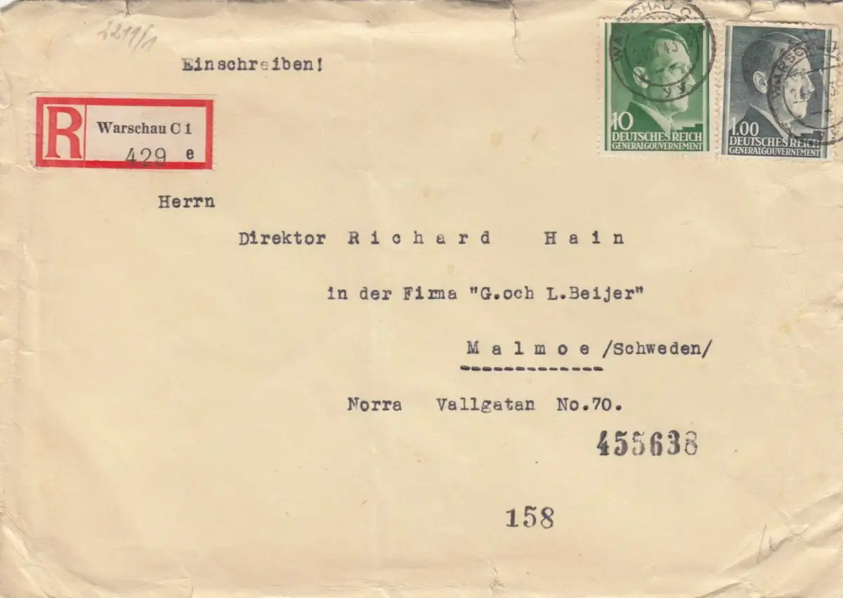 GG Suède: inscription Varsovie après Malmoe, fissure et censure
