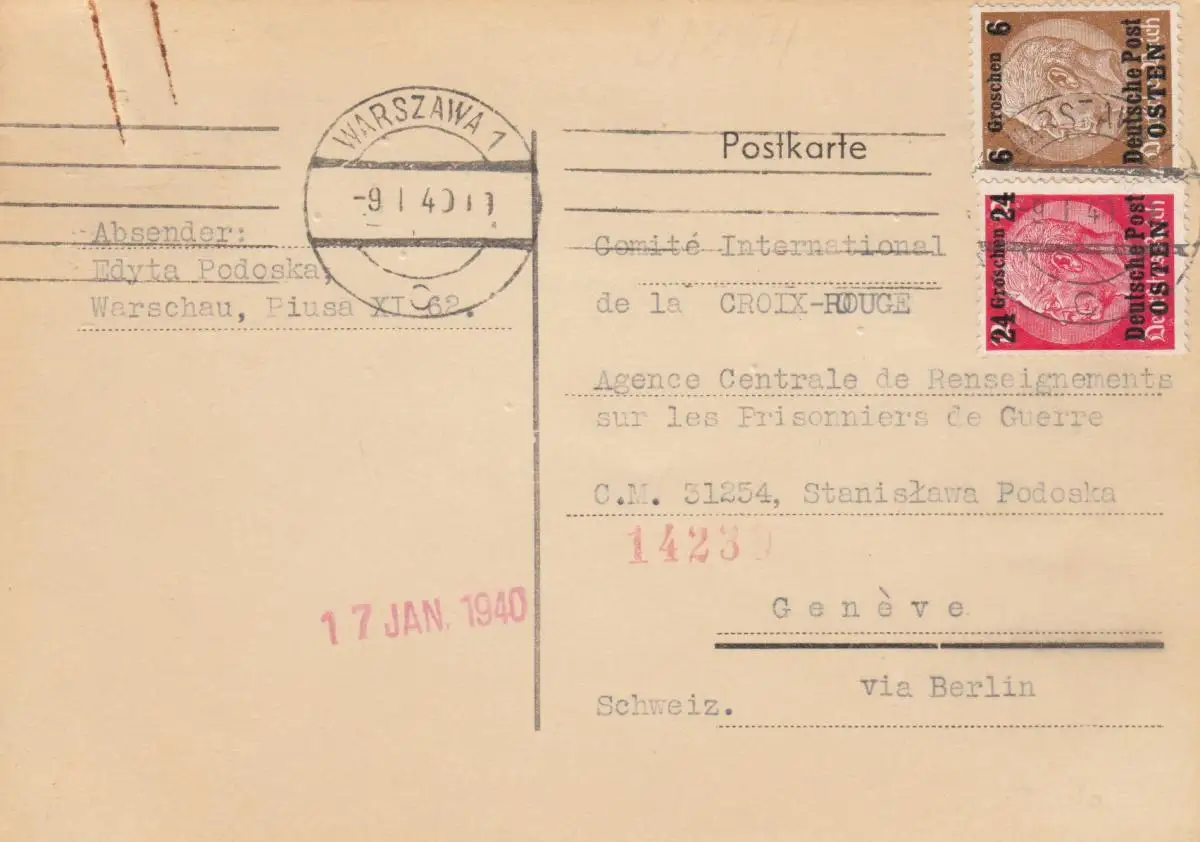 GG Suisse Varsovie comme carte postale à la Croix-Rouge, prisonniers de guerre