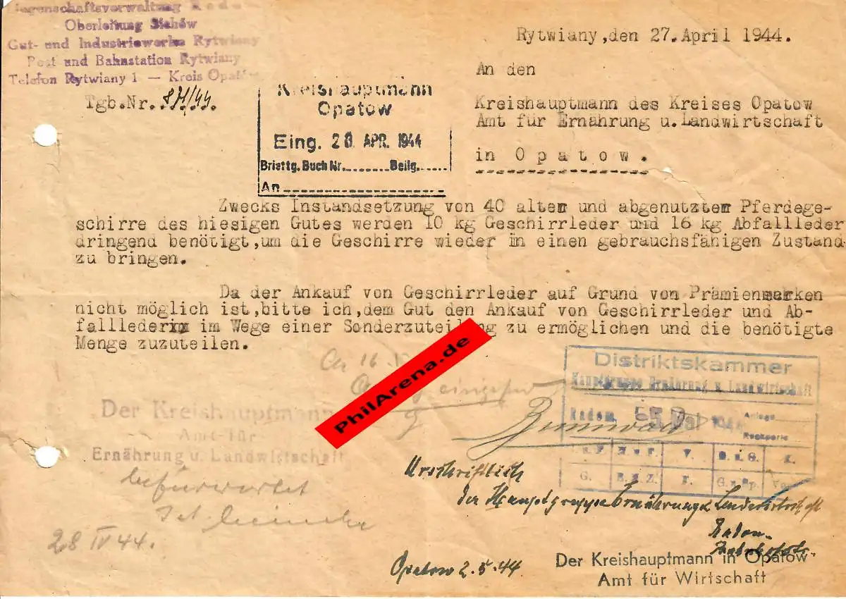 GG: Sucreries Rytvianynach Opatow: Peaux de poubelles pour vaisselle de chevaux 1944