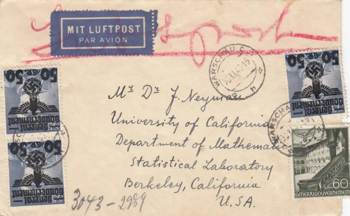 GG USA: porto approprié pour 10-15gr comme poste aérien Varsovie, rare francature, censure