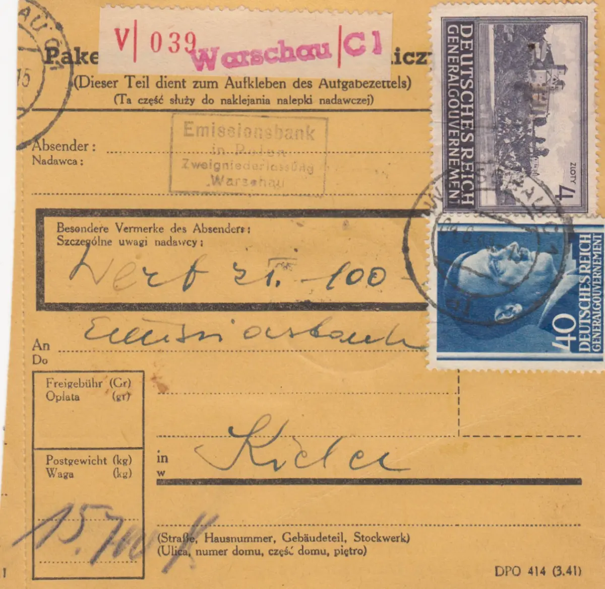 Carte de paquet intérieur de valeur GG Varsovie-Kielce-Emissionbank