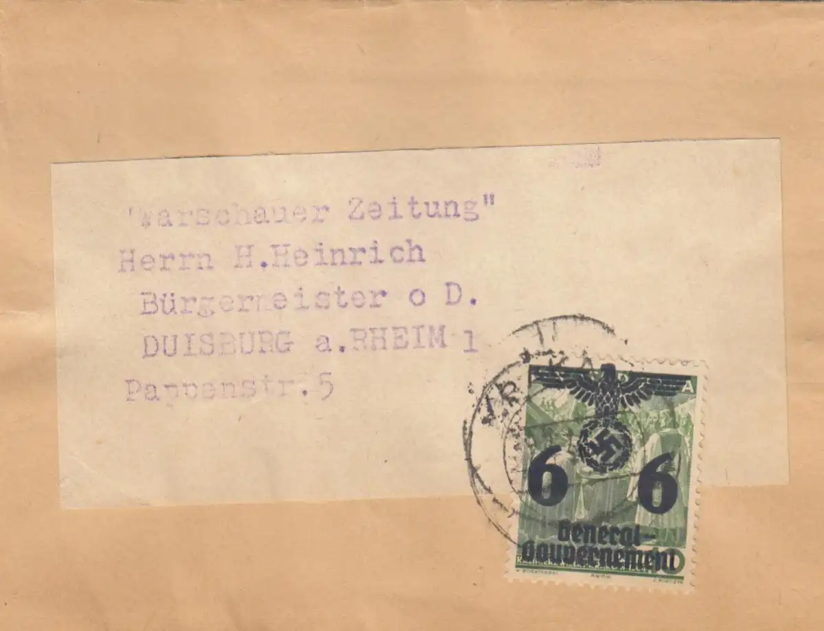 GG Presses à papier Streifband Varsovieer Ztg. au maire Duisburg