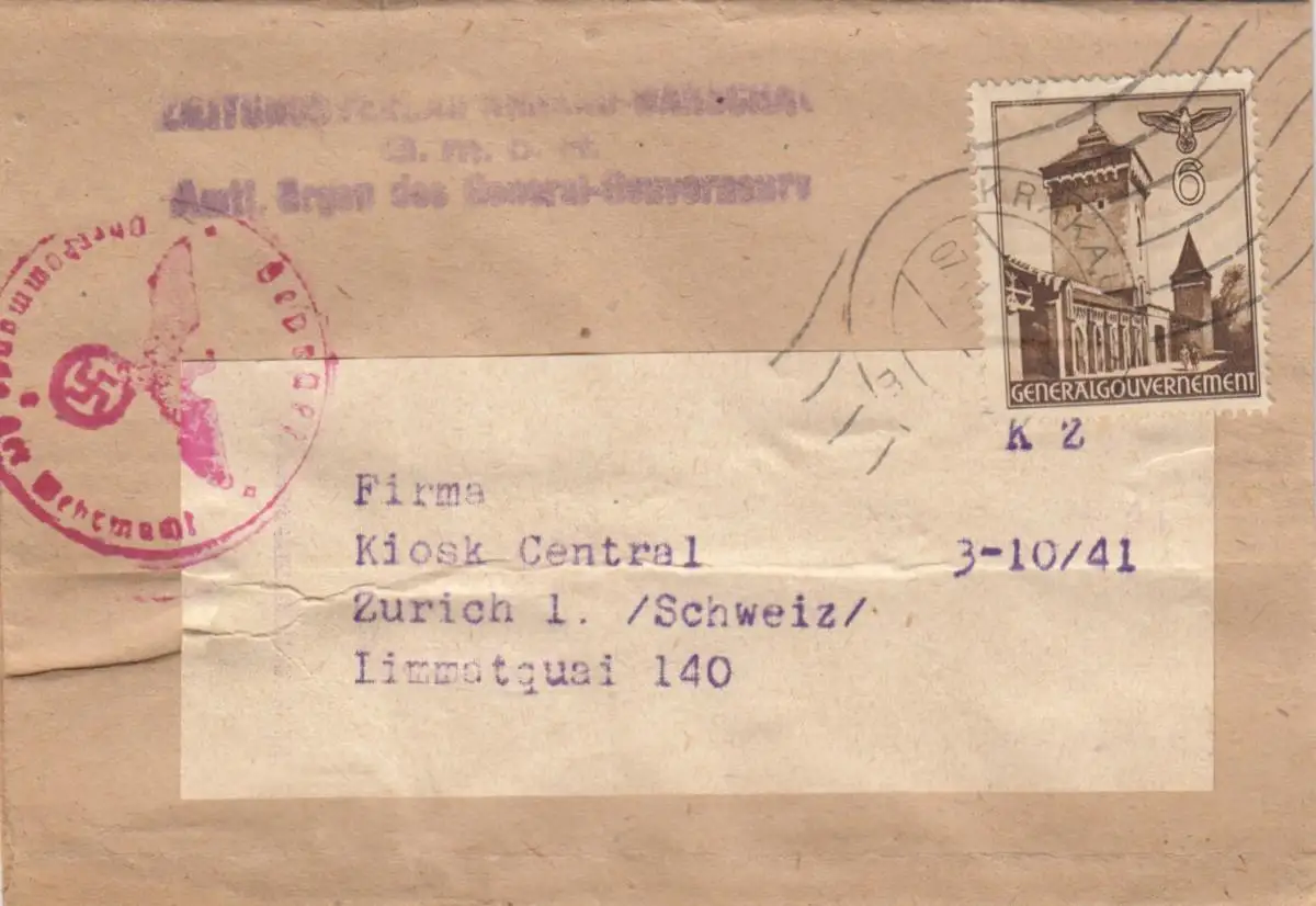 GG Bande de journaux, à Kiosk Central, Zurich avec censure, rare