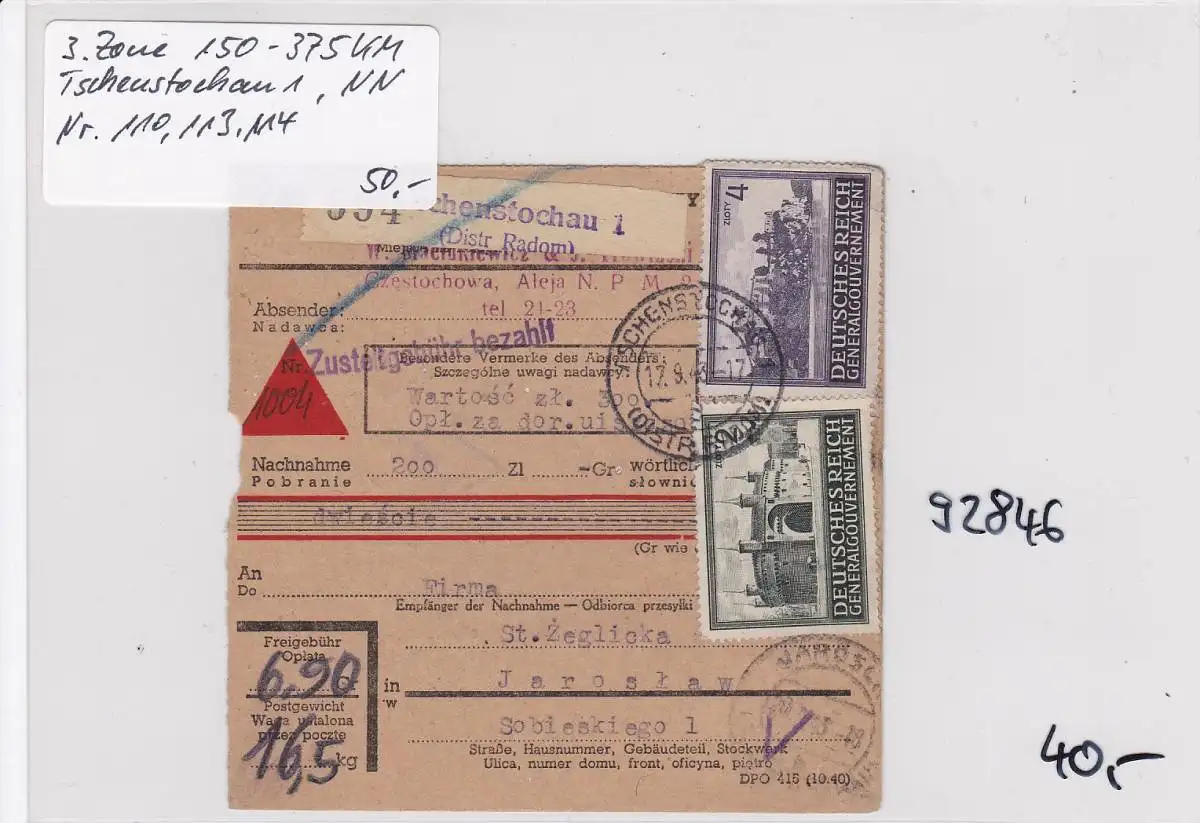 GG: carte de paquet, livraison Chenstochau 16,5 kg, haute facture, valeur