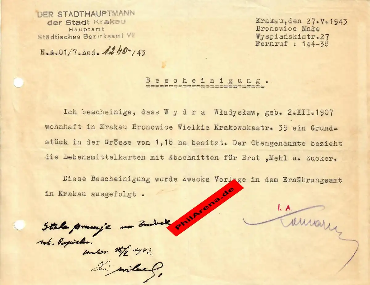 GG: certificat de fournisseur partiel, besoin de carte alimentaire pain, ..., Cracovie 43