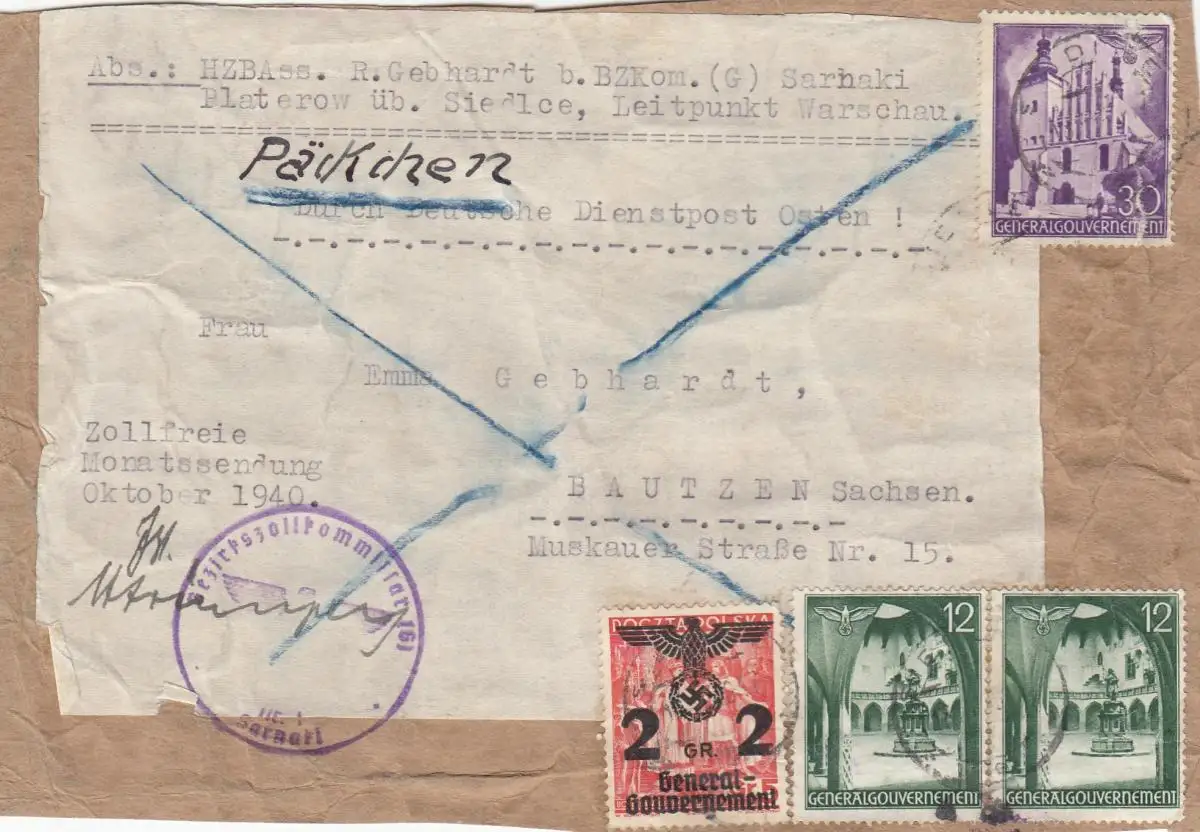 GG: colis, envoi mensuel en franchise de droits de la poste de terrain après Bautzen
