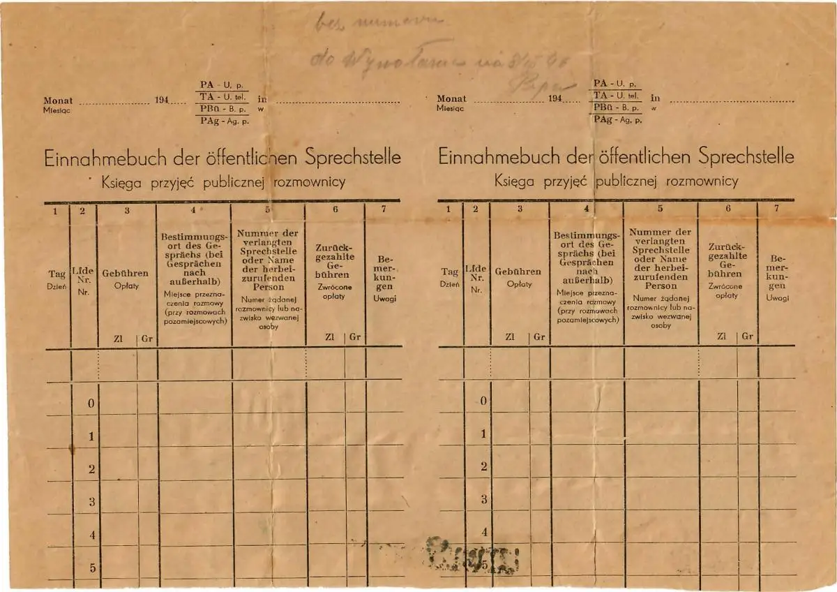 GG: formulaire DPO Livre de recettes Les bureaux de langue comme formulaire de télégramme: Pologne 1950/52