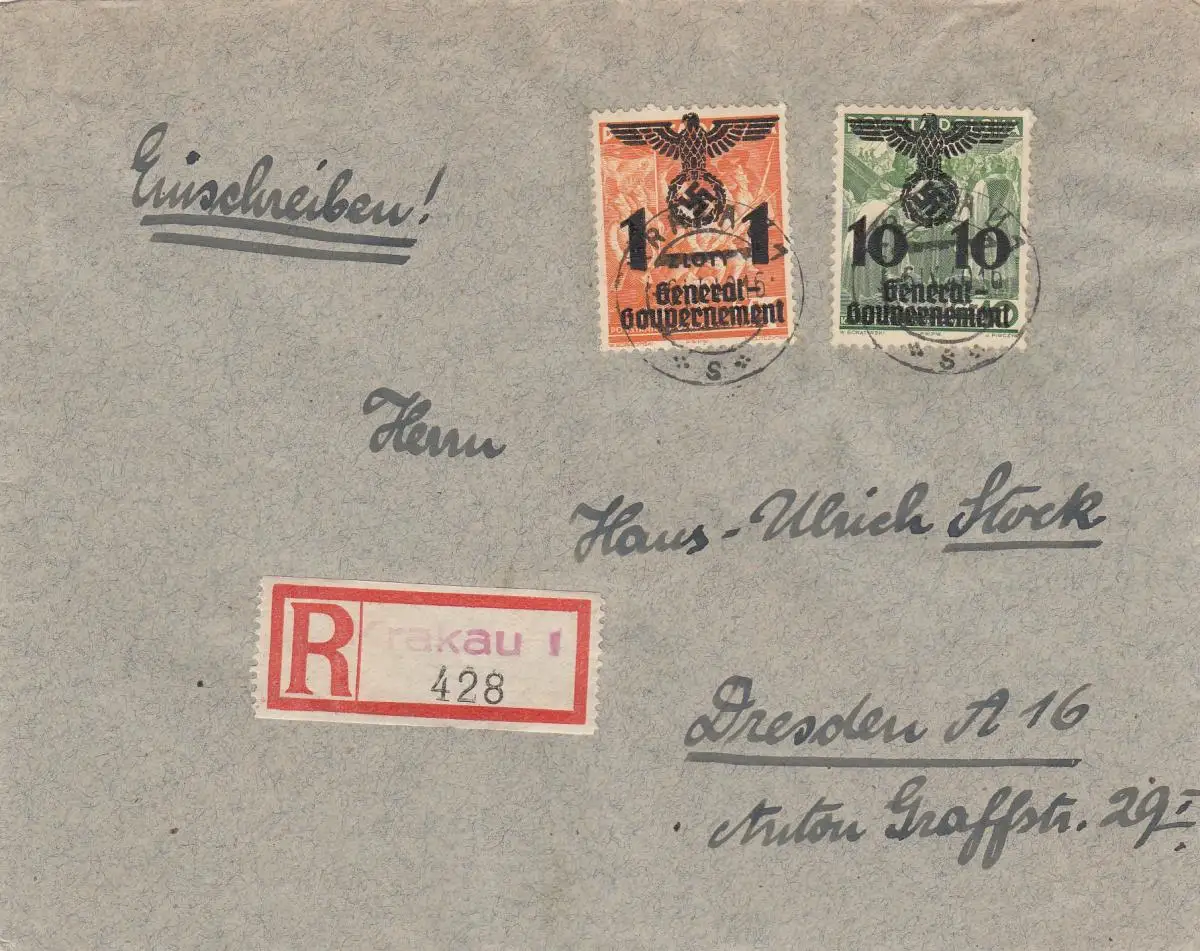 GG: lettre recommandée Cracovie 1, 6.IV.40 selon Dresde