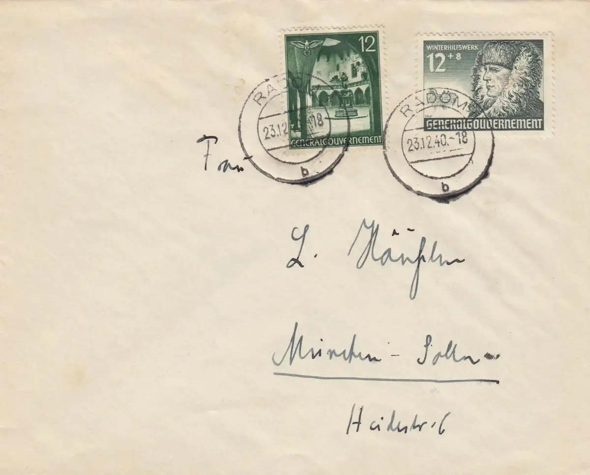GG: porto-fair MiF de la WHW 12Gr marque Radom vers Munich