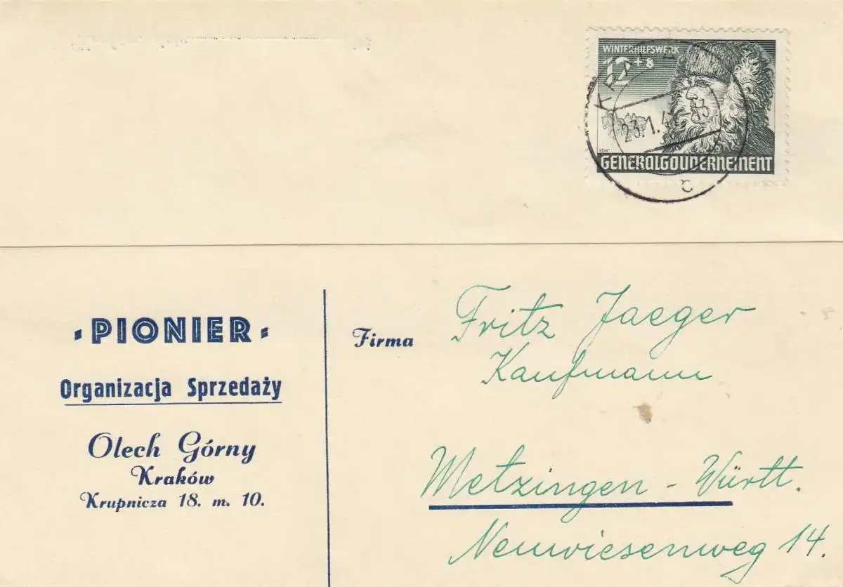 GG: EF de 12Gr sur carte postale Cracovie-Metzingen