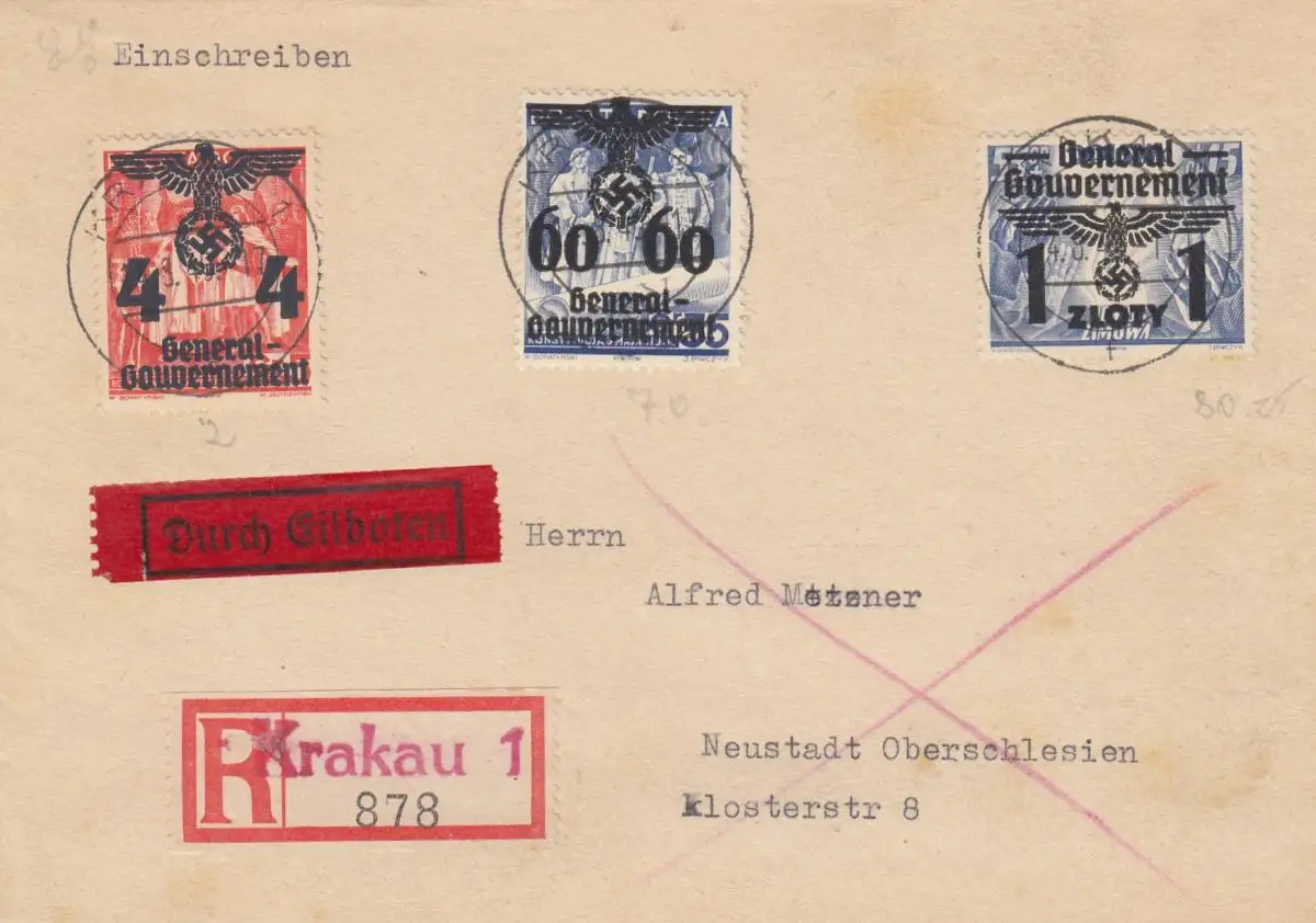 GG: recommandé/eilbot Cracovie 1 par Neustadt/OberSilesien, portofach