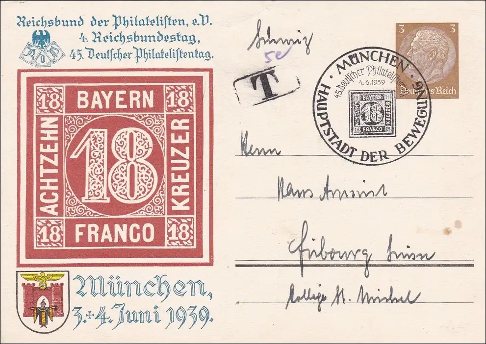 Tout à fait, 45ème Journée des philatélistes allemands de Munich 1939, TAXE Suisse