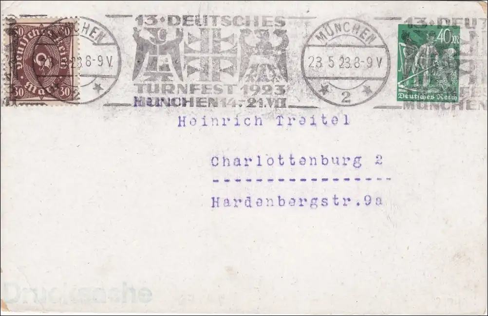 Affaire entière: Deutsches Turnfest 1923, Munich - Tampon publicitaire après Charlottenburg