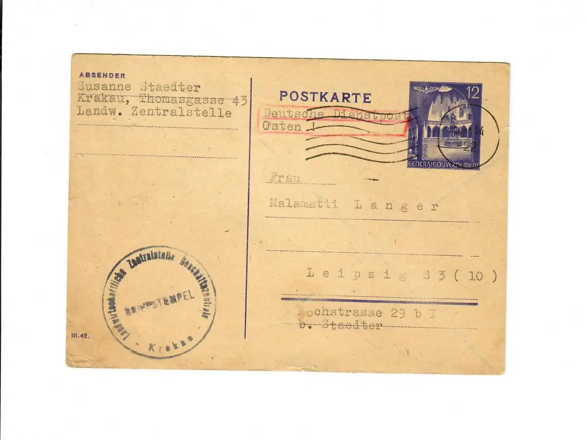 Affaire GG P 12 02: 14.11.44 Landw. Zentralstelle Cracovie vers Leipzig