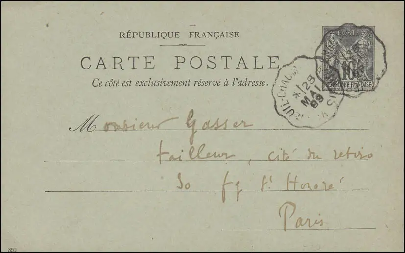 Affaire entière Carte postale Allegory Paix et Commerce 10 C. le 28 mai 1889 à Paris