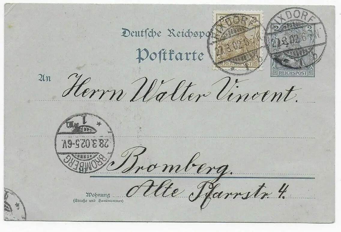 Affaire entière Carte postale Bixdorf 1902 à Bromberg, dos de la presse privée