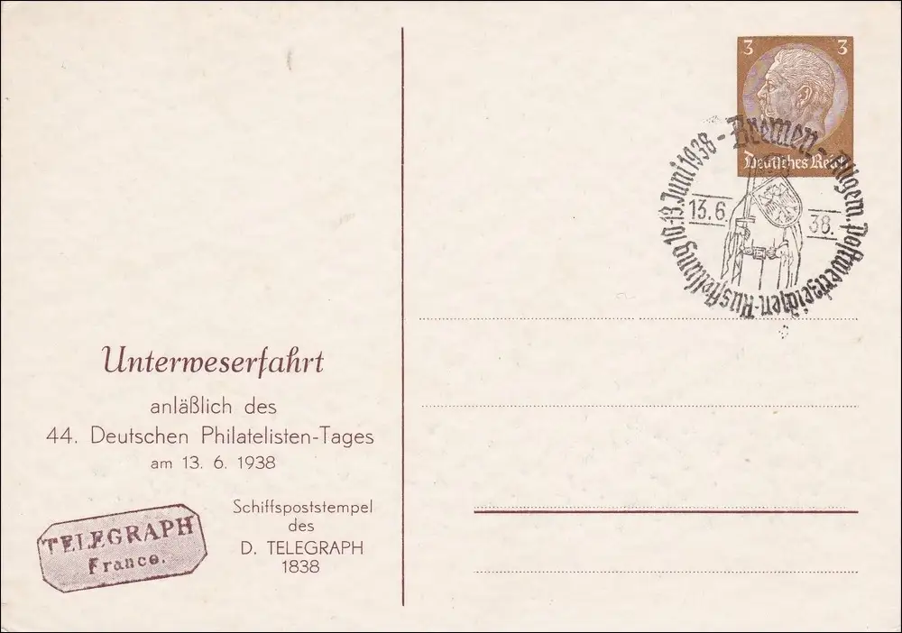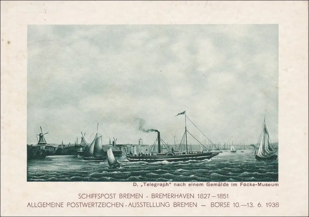 Tout ce qui est en jeu: Poste maritime Bremen-Bremerhaven, exposition Timbres 1938,