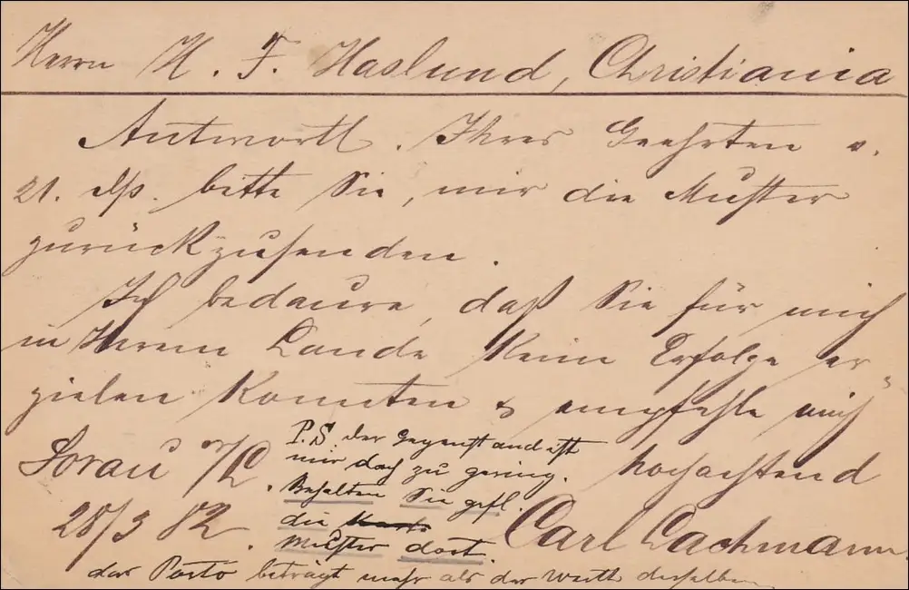 Tout l'affaire de Sorau à Christiania 1883