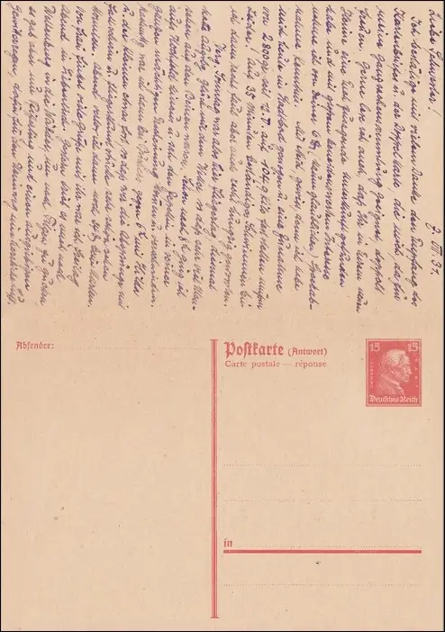 P1731, de Augsbourg à Marienbad 1931 avec carte de réponse
