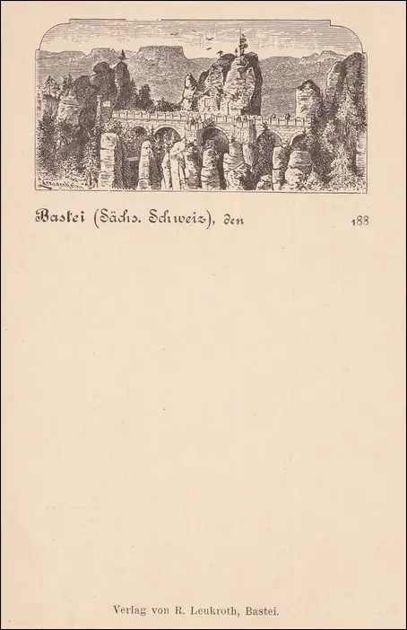 Carte complète inutilisé avec l'image arrière Bastei (Sächs. Suisse) 1888
