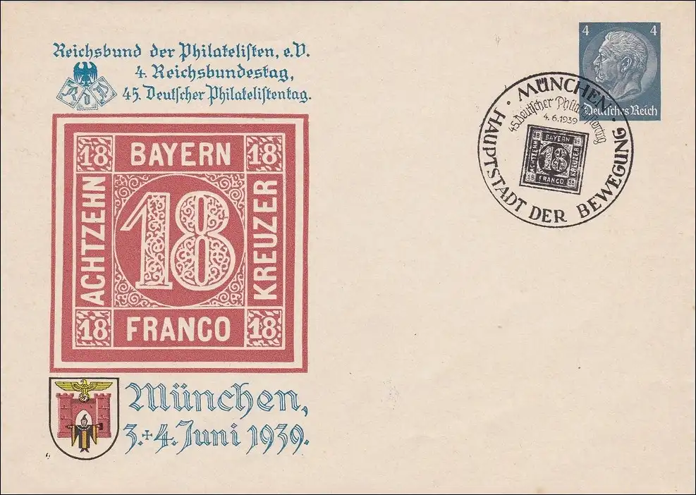 Enveloppe complète: 45ème Journée des philatélistes allemands de Munich 1939