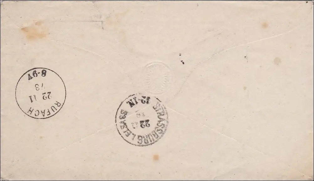 Enveloppe complète de la poitrine en 1873, de Wusterwitz à l'Alsace