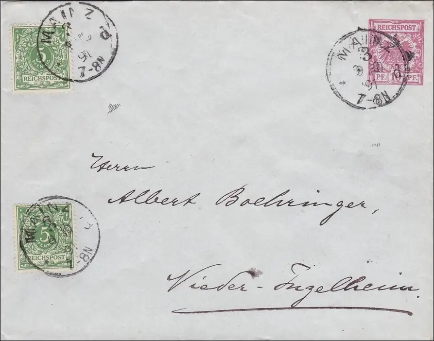 Enveloppe complète: Mayence vers Nieder-Ingelheim 1891