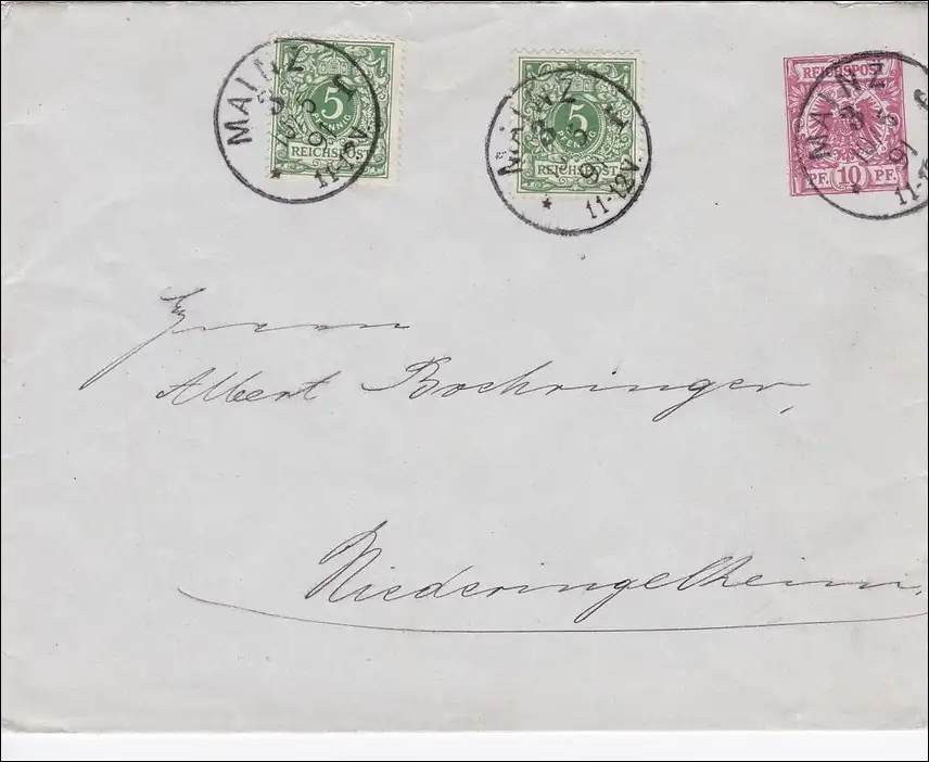 Envois de dossier de Mayence vers Niederingengelheim 1891