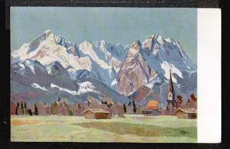 Garmisch im Frühling. Nach einem Gemälde von Prof. Carl Reiser - Nicht gelaufen. (NPLZ 82467, Künstler)