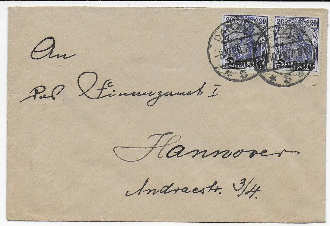 Gdansk: Lettre 1920 au Trésor de Hanovre