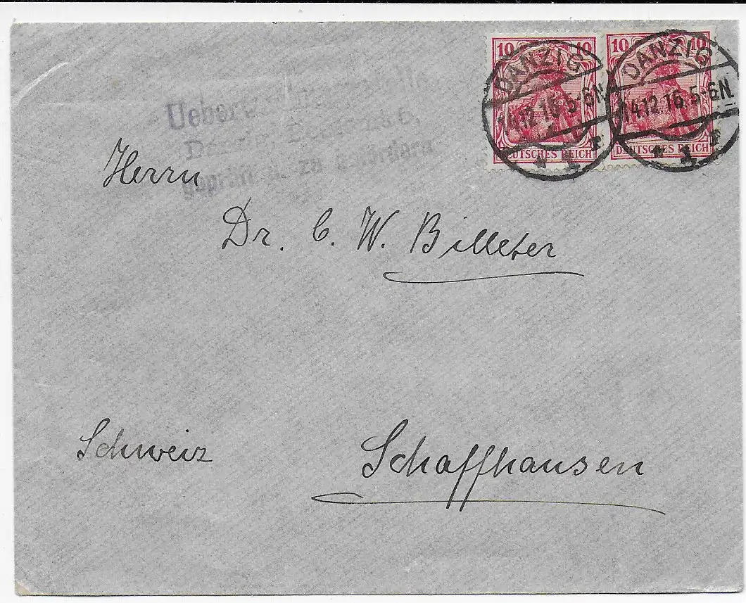 Gdansk: Lettre à Schaffhouse 1916 avec censure Gdansk