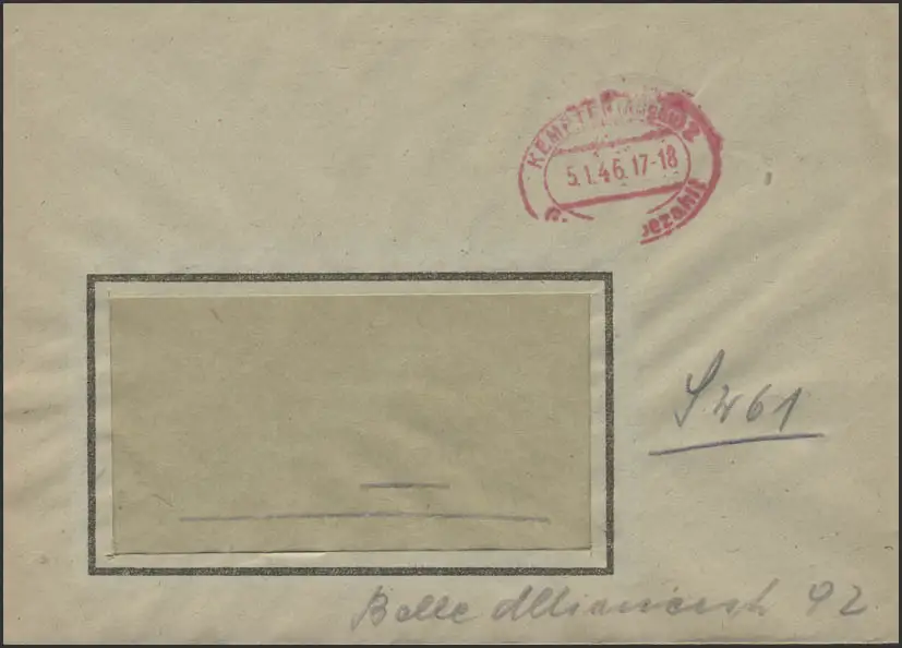 Payé par les frais Lettre de fenêtre Kempten/Algäu 5.1.46