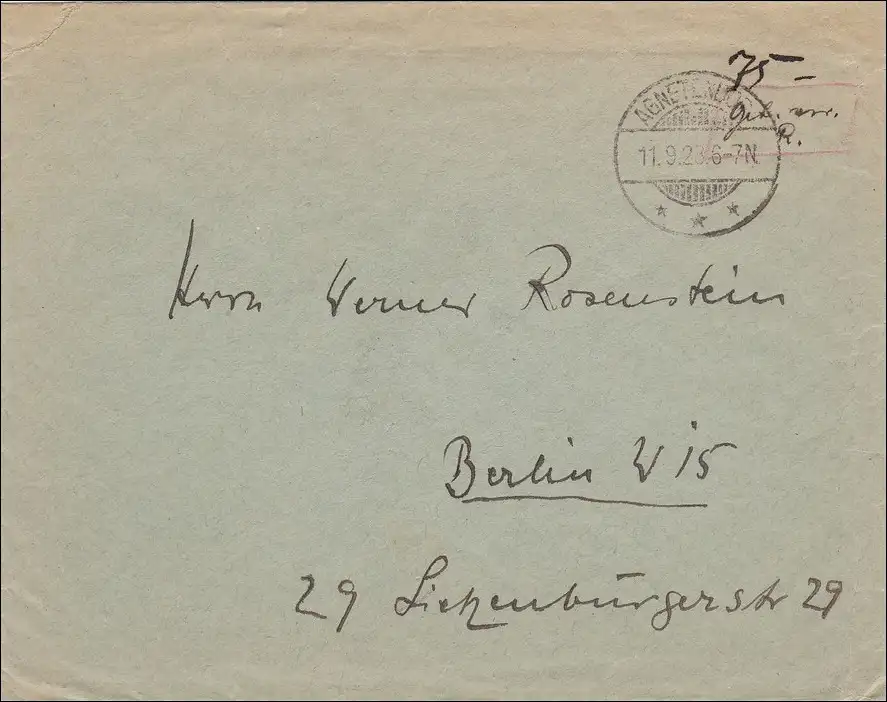 Frais payés: Lettre d'Agnetendorf 1923 à Berlin