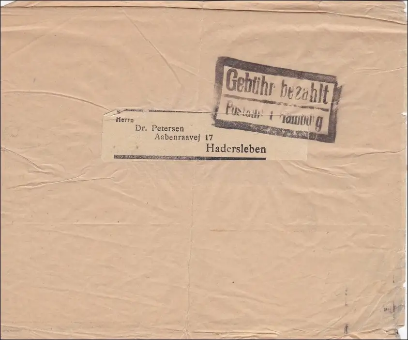 Frais payés: Lettre de Hambourg à Hadersleben