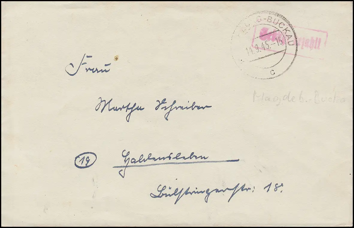Temple payant sur lettre MAGDEBURG-BUCKAU 14.9.1945