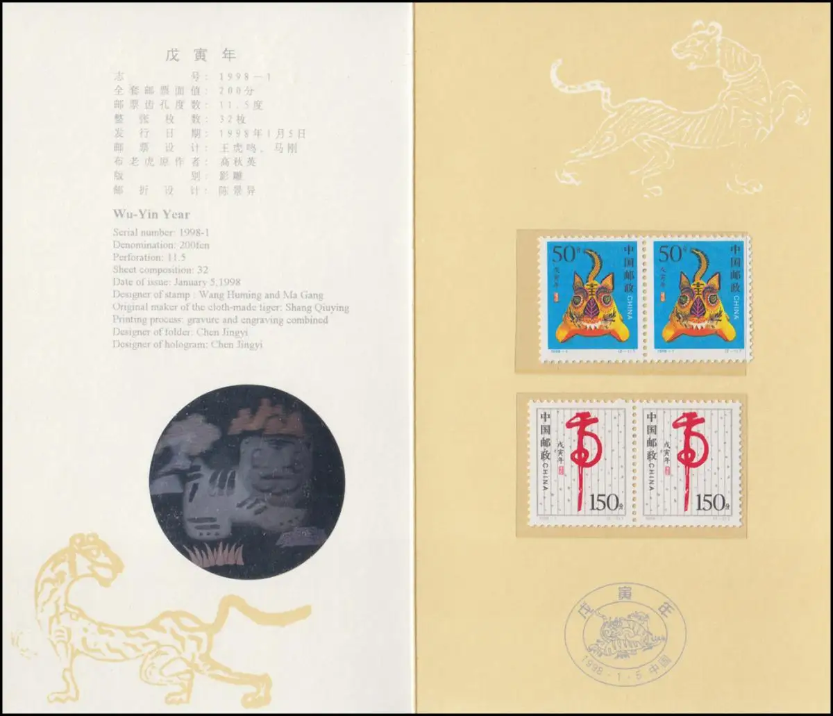 Carte commémorative Chine 2874-2875 Année du tigre 1998 - avec hologramme, couples **