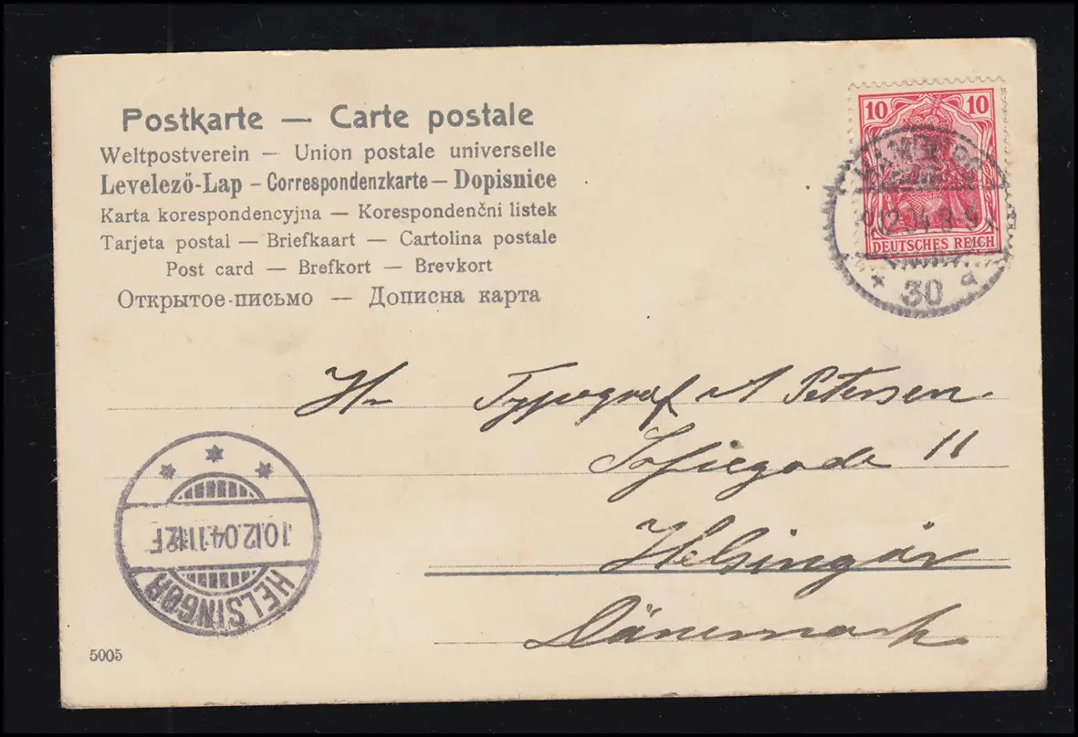 Carte postale internationale au Danemark, cachet d'arrivée Helsingör 10.12.04 Vérification: original Référence produit: 00000000044974