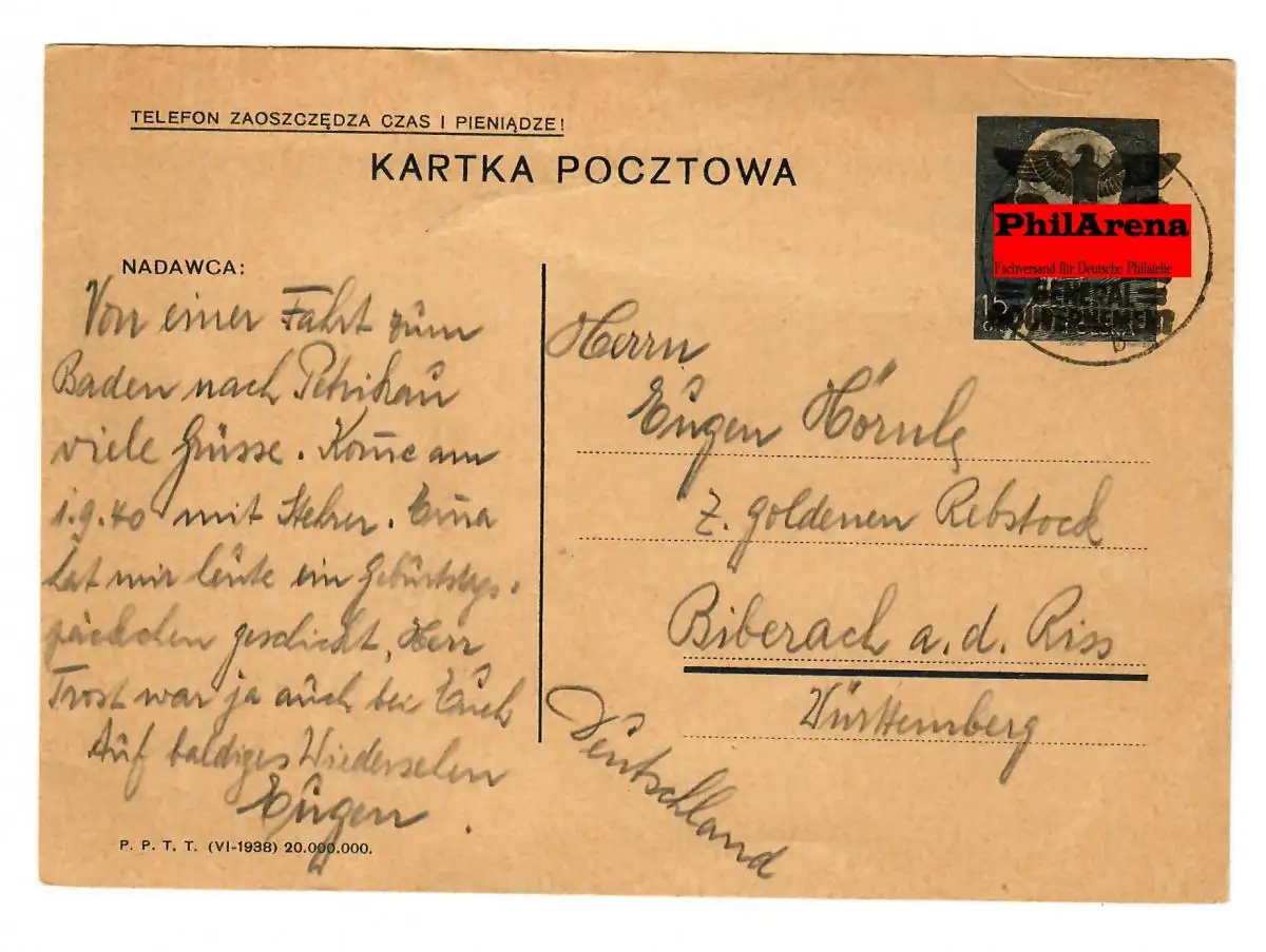 P.P.T. T. (VI-1938) 20 millions. Texte: .... d'un voyage à Petricau ... Pour plus d 'informations voir Scan Article Nr. 954435 Vérification: original Numéro d ’ article: 00000000954445