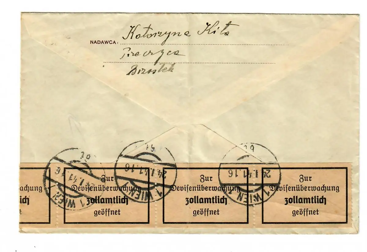 GG: Affaire complète U1 Agence postale Brzostek sur Jaslo - Vienne 1941