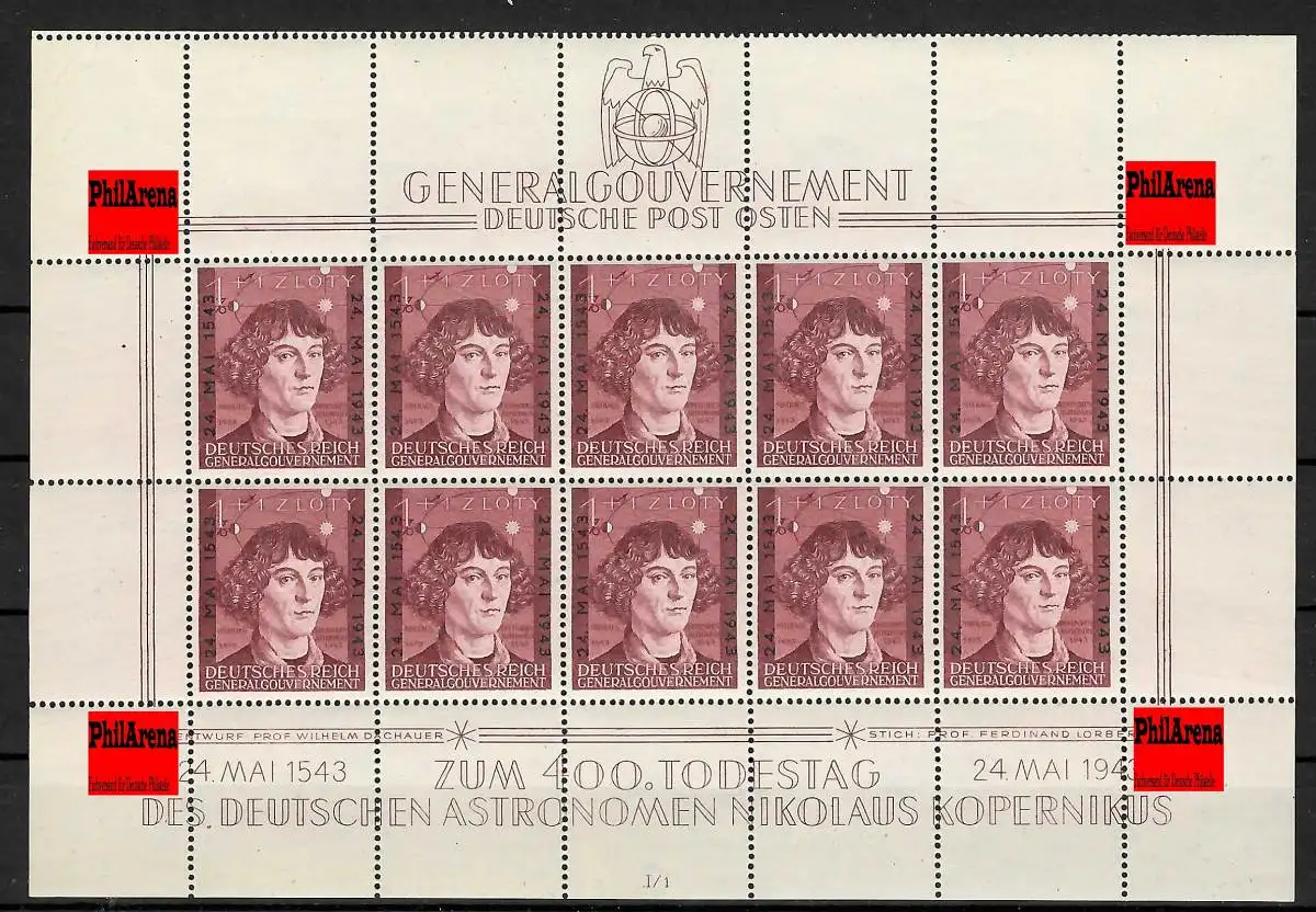 Generalgouvernement GG Kleinbogen MiNr. 104 - Kopernikus I/1 ** oben gezähnt