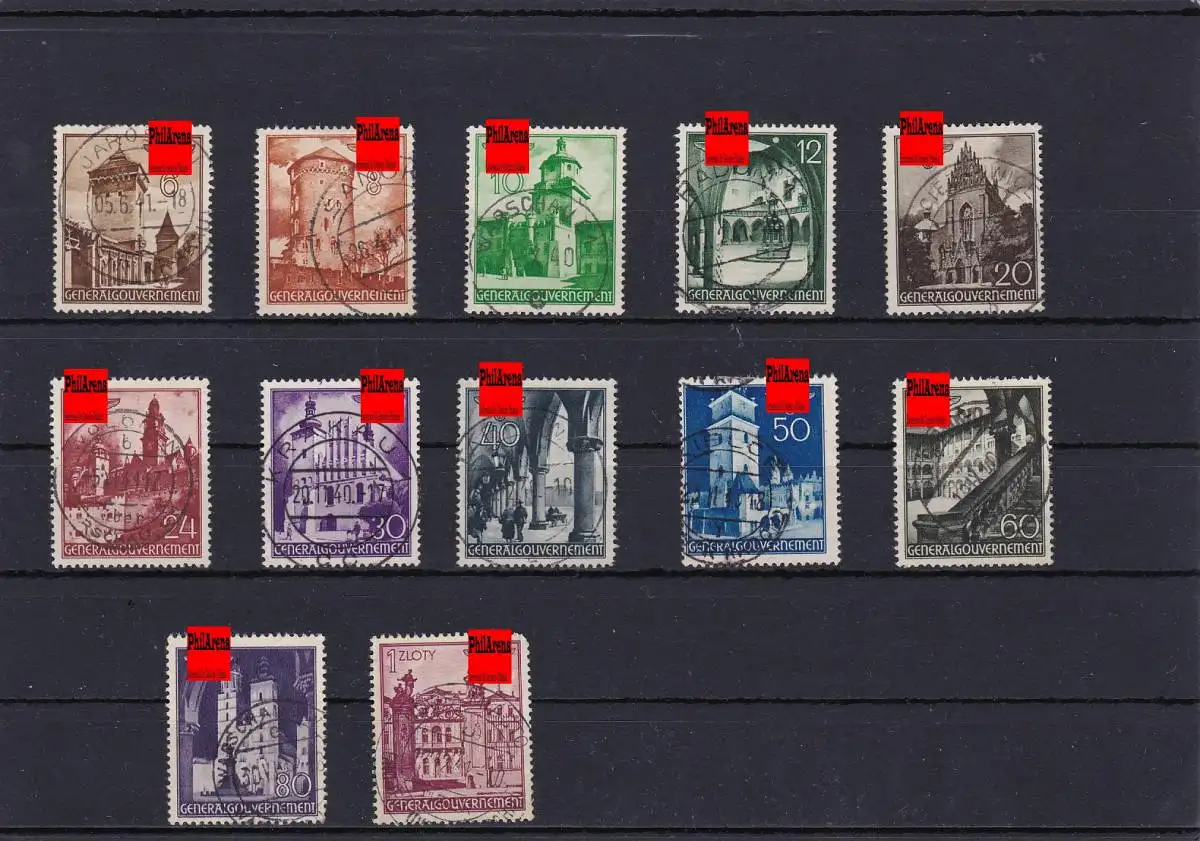 Gouvernement général (GG): MiNr. 40-51 bellement tamponné complet