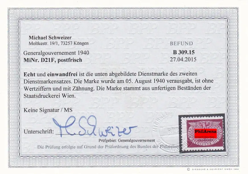 Gouvernement général (GG) MiNr. D21F, **, BPP Photos trouvées