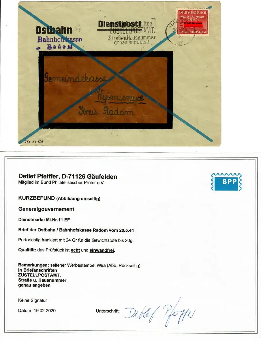 Gouvernement général GG Tampon publicitaire rare: Radom, BPP résultats 1944